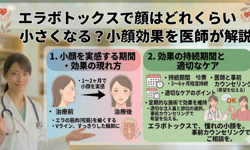 エラボトックスの効果は3〜6ヶ月程度続くことが多いです。