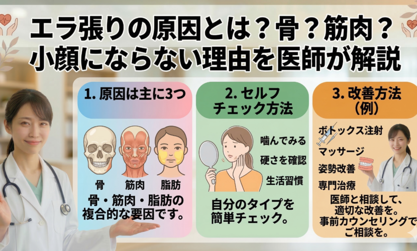 原因によって適した治療方法も変わるため、まずはエラ張りの原因を知ることが大切です。