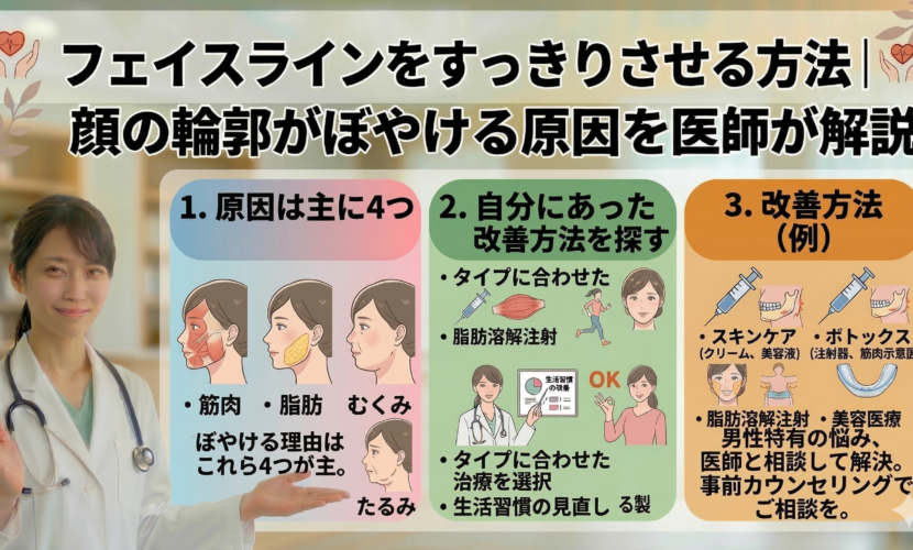 原因に合わせた方法を選ぶことで、フェイスラインをすっきり見せることができます。