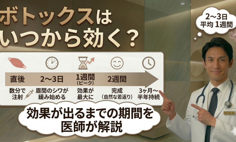 ボトックスの効果は通常2〜3日程度で出始めます。