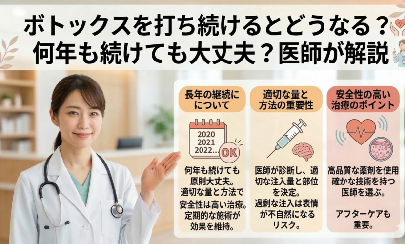 ボトックスは多くの方が 定期的に継続している治療ですが、長期間続けることについて気になる方も少なくありません。