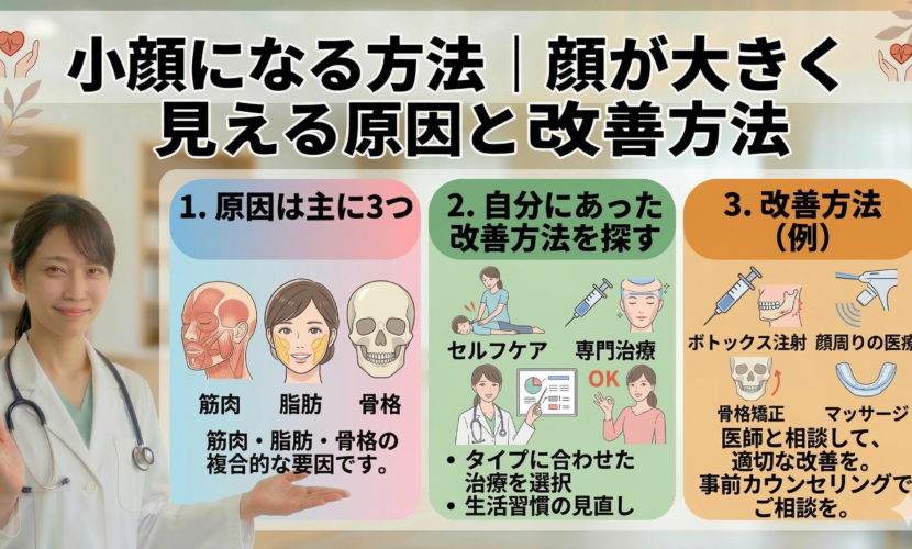 骨格が原因で顔が大きく見えることもあります。
