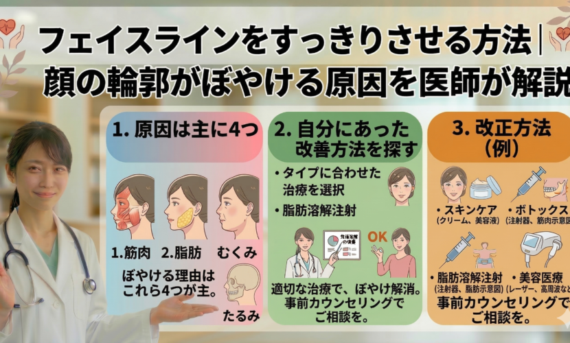 原因に合わせた方法を選ぶことで、フェイスラインをすっきり見せることができます。