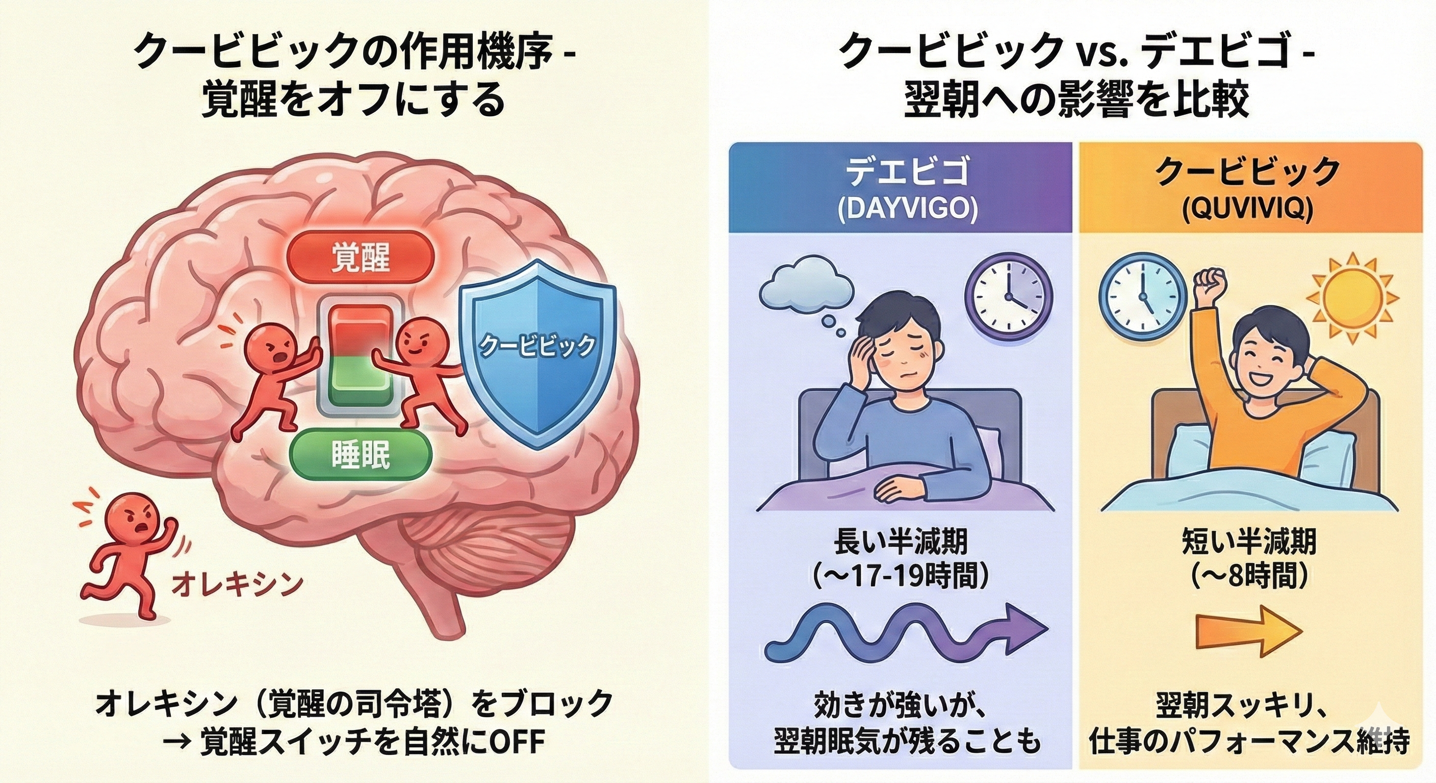 - クービビックは覚醒を静かにオフにする次世代睡眠薬