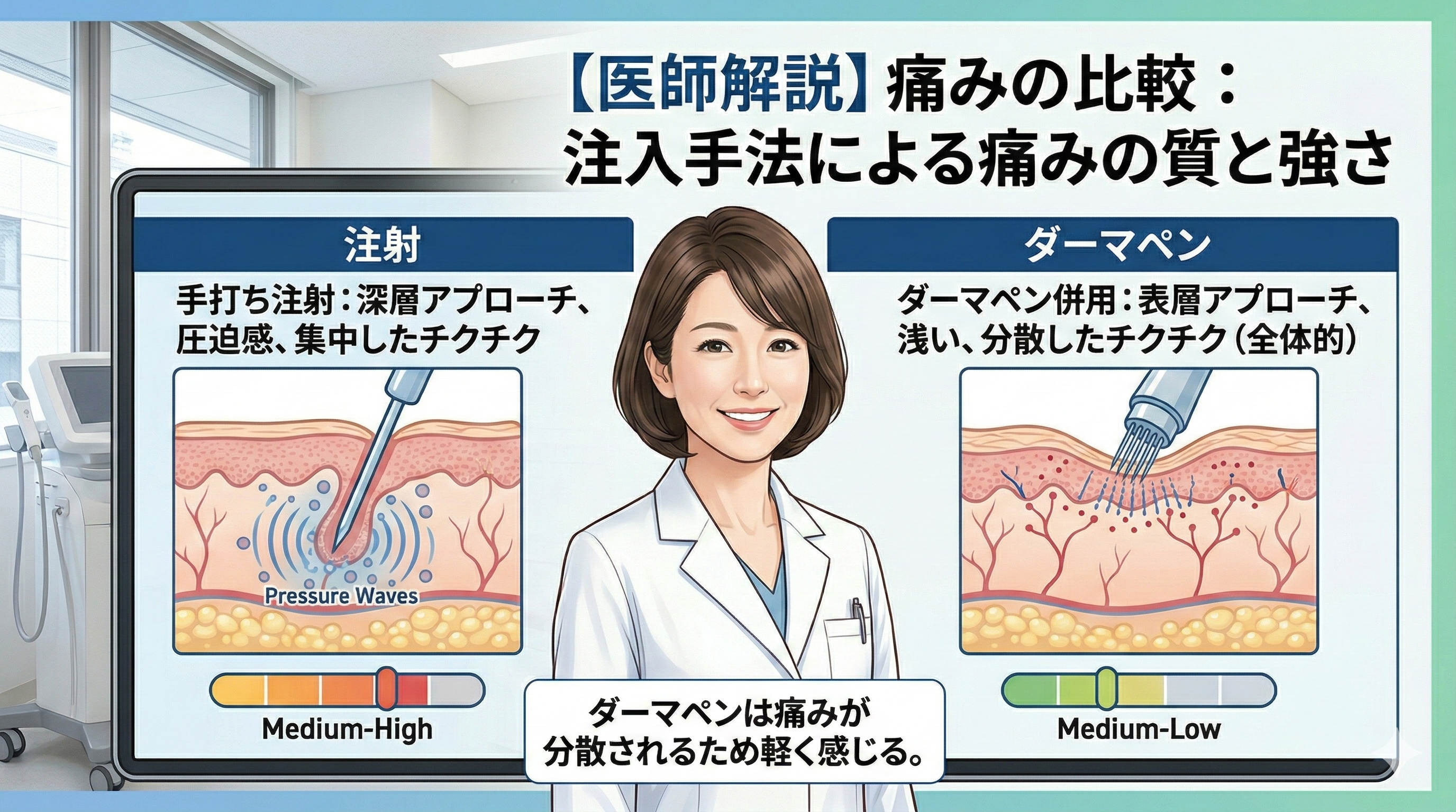 • 浅すぎる層に入るとヒリヒリ・チクチク感が出やすい