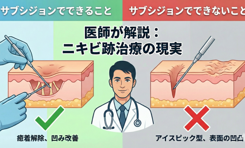 ニキビ跡サブシジョンの全体像(効果・限界・向き不向き)は、こちらの記事で体系的に解説しています。