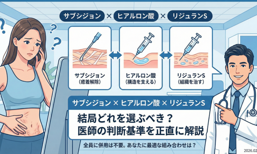 脂肪吸引後の癒着に対してサブシジョンを検討していると、多くの方が次に悩むのが、