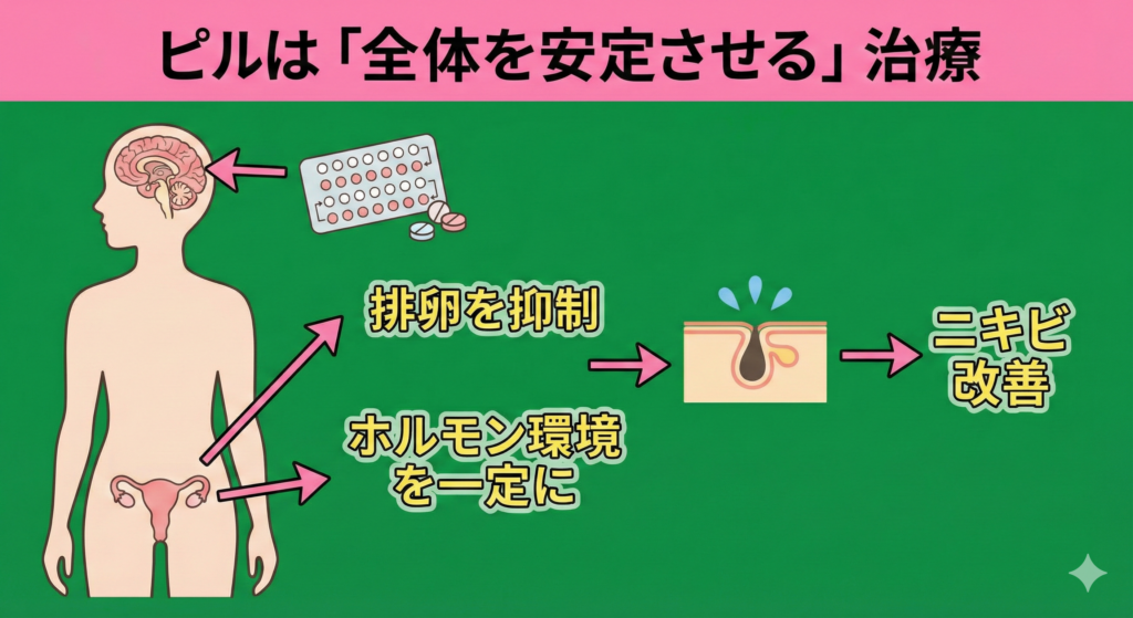 ❌ ピルを飲めば治る?