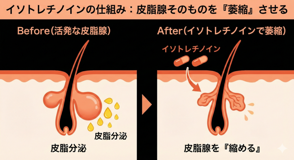 - イソトレチノイン:皮脂腺を強力に抑制