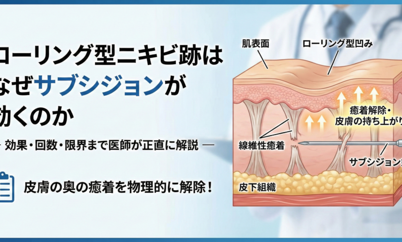 ニキビ跡サブシジョンの全体像(効果・限界・向き不向き)は、こちらの記事で体系的に解説しています。