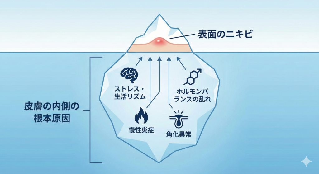 **“皮膚の内側の問題”**が強く関与します。
