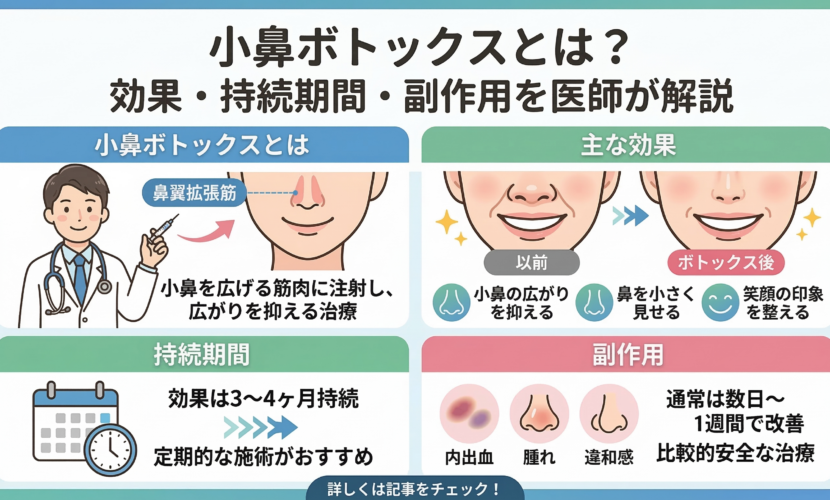 小鼻ボトックスとは?効果・持続期間・副作用を医師が解説