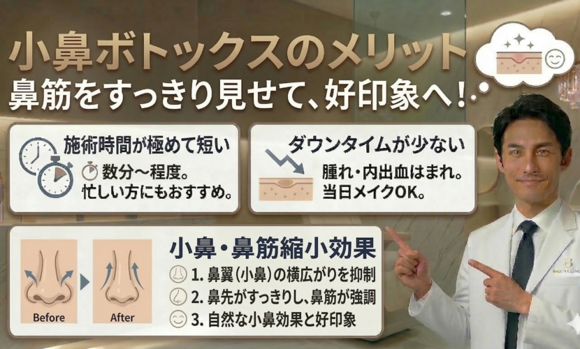 小鼻ボトックスとは、小鼻を広げる筋肉にボトックスを注射する治療です。