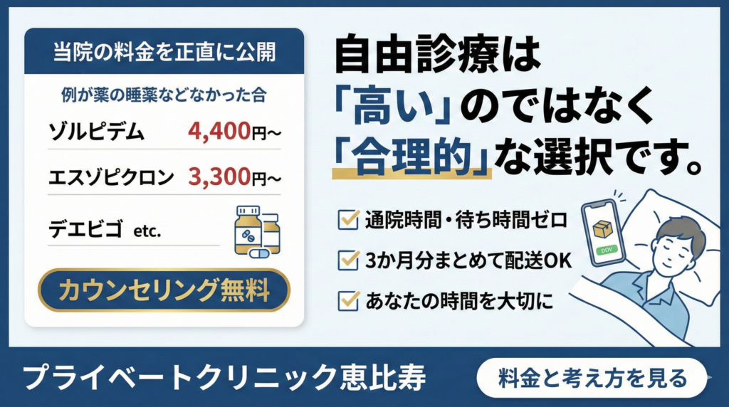 このように感じている方は、実はとても多いです。そうした方にとって、自由診療での睡眠薬処方は、非常に合理的でストレスの少ない選択肢になります。