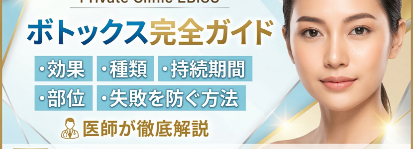 小顔・しわ・肩こり・多汗症まで対応できる美容医療の基本治療 美容医療で最も有名な治療の一つが ボトックス(ボツリヌス注射) です。 ボトックスは、しわ治療だけでなく、小顔治療、食いしばり、肩こり、多汗症、フェイスライン改 … 続きを読む ボトックス完全ガイド|効果・種類・持続期間・部位・失敗を防ぐ方法まで医師が徹底解説