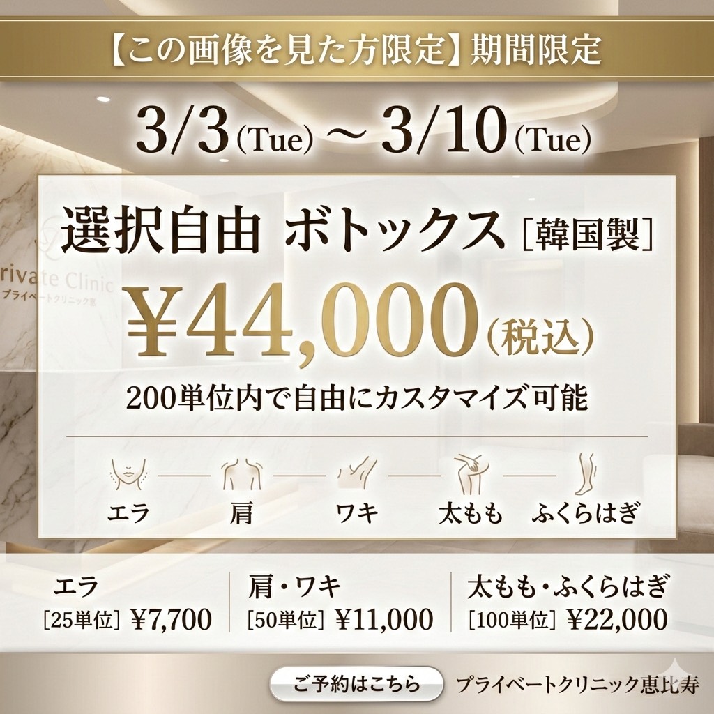 (3月10日まで)選べる200単位ボトックス注射