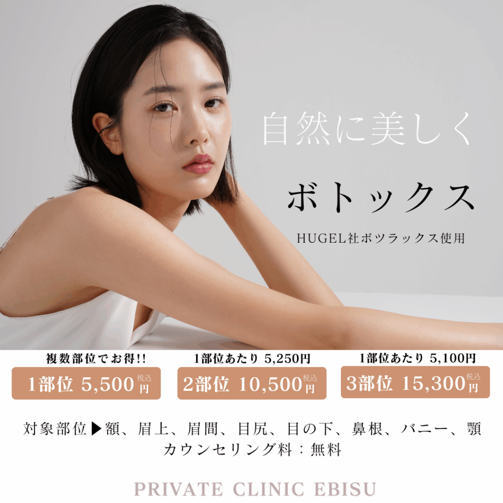 - ボツラックス(額、眉上、眉間、目尻、目の下、鼻根、バニー、顎)4部位以上(追加1箇所につき)